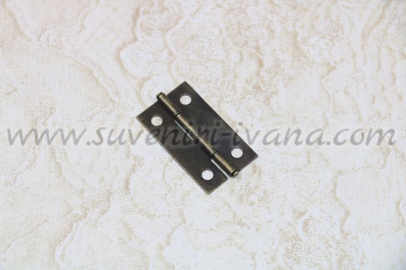 Винтидж елемент метална панта за кутии с размери 16 х 28 мм. Цвят старо злато. Подходяща за монтиране на леки мебелни вратички, капаци на дървени кутии и други. Пантите се монтират с 4 броя подходящи винтчета.