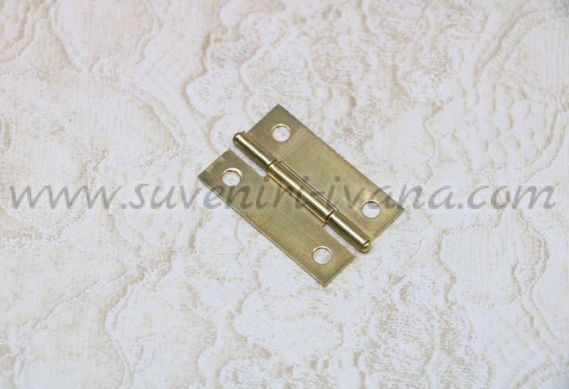 Метални панти с остри ръбове, подходящи за закрепване на капаци и вратички на дървени кутии. Цвят злато. Размер 2,8 х 1,6 см.
