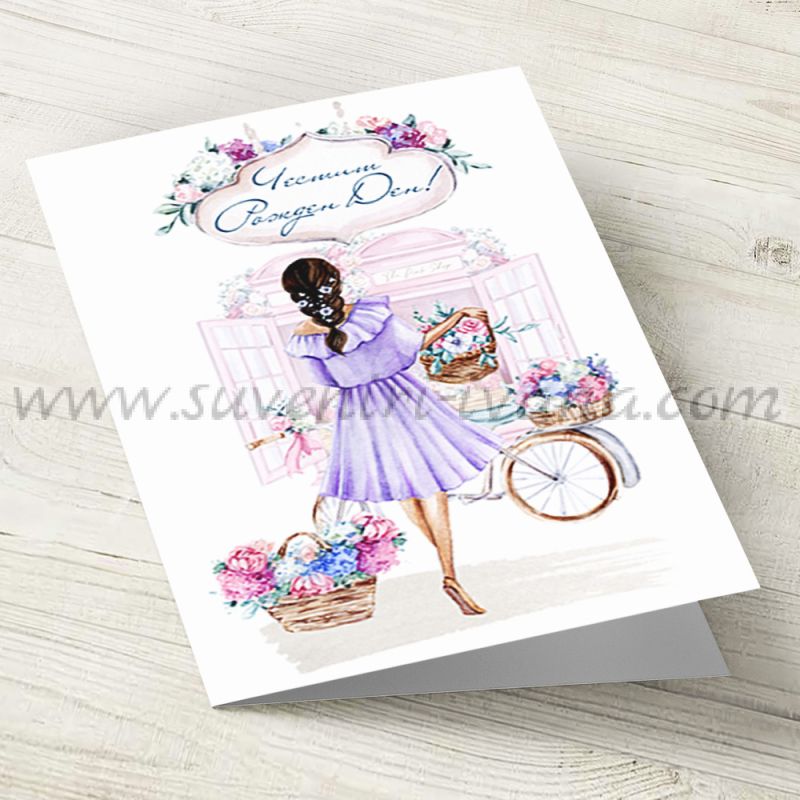 Ръчно изработена картичка с надпис 'Честит Рожден Ден'. Картичката е с акварелна илюстрация върху еко картон с ленени влакна. Подходяща е за детски празници, рождени дни и други. Размери 10,0 х 15.0 см. Картичката се предлага с плик.