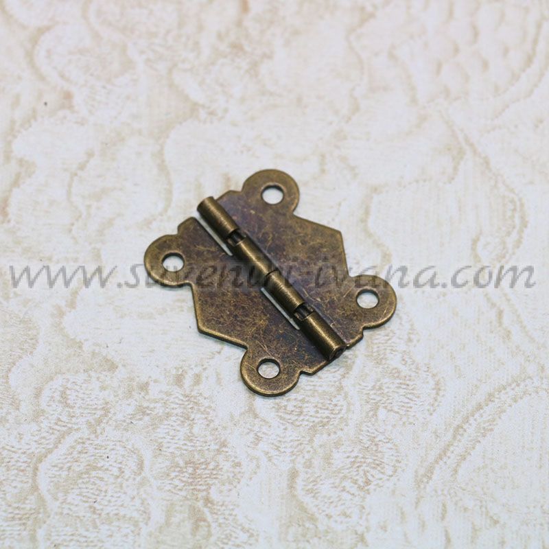 Метални панти тип пеперуда, подходящи за закрепване на капаци и вратички на дървени кутии. Цвят старо злато. Размер 2,6 х 3,1 см.
