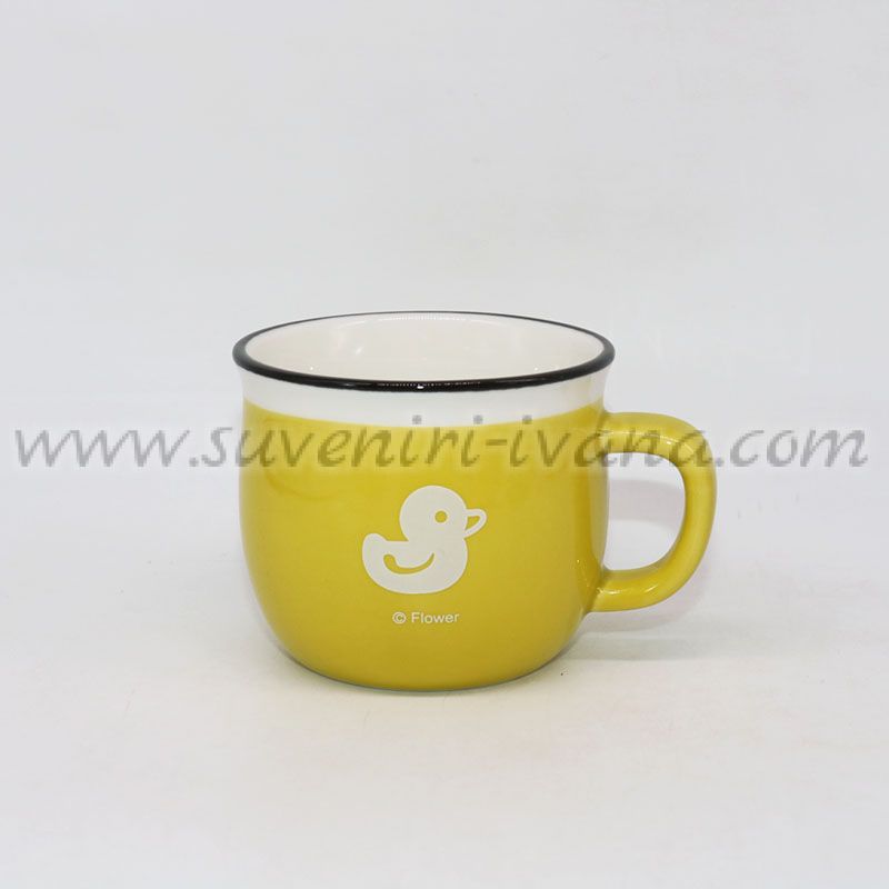 Керамична чашка за кафе в жълт цвят с картинка пате. Чашата е чудесна идея за подарък както за дете, така и за възрастен. Вместимост 180 мл.