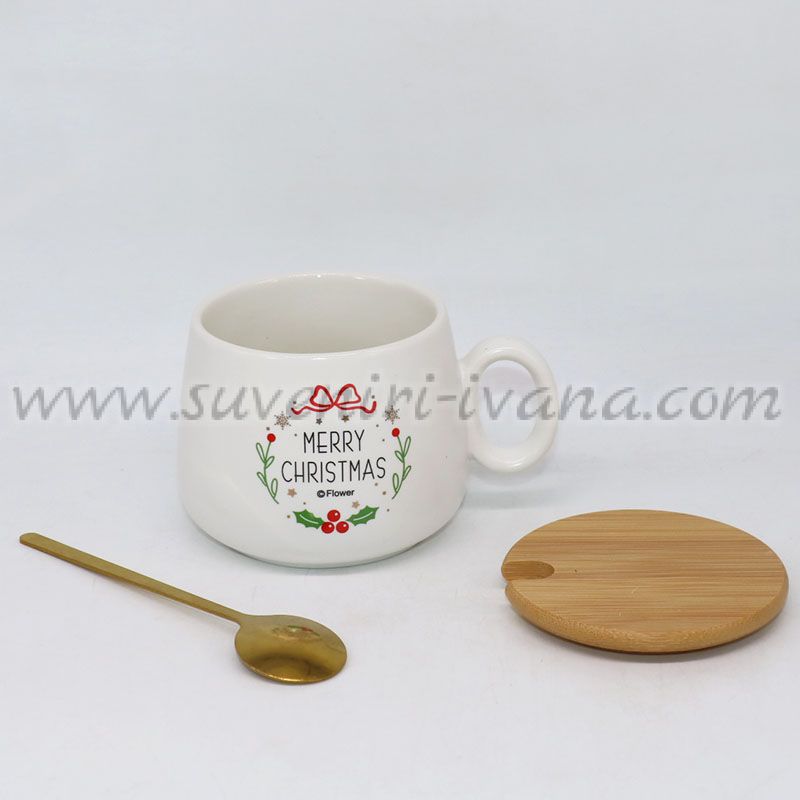 Коледна чаша 'Merry Christmas' с бамбуково капаче и лъжичка, модел две