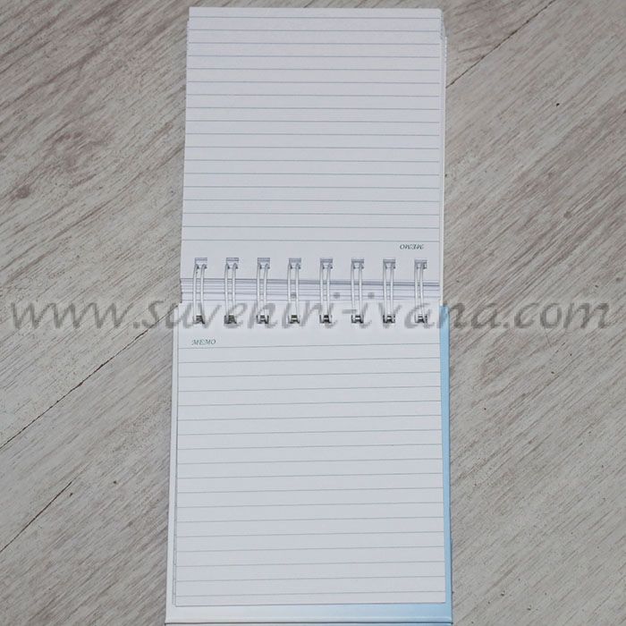 Бележника е с метална спирала. Страниците са на редове. Размери на бележника 11,0 х 14,5 см. Брой листа 64.