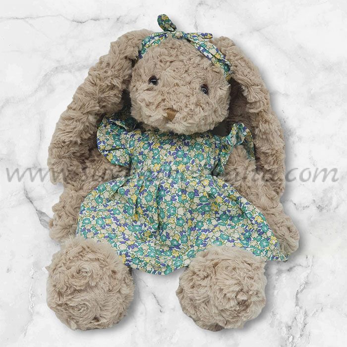 Меко плюшено зайче, облечено в красива рокля на цветенца и панделка за декорация на главата. Височина на зайчето в изправено положение 30,0 см.