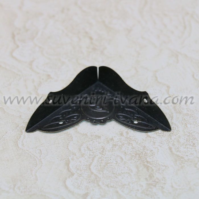 От горната страна на ъгълчетата има гравирани орнаменти. Металните ъгълчета са в стил винтидж и са подходящи още за различни крафт и арт проекти свързани с обков и декорация на албуми, тефтери, различни дървени аксесоари и други. Монтират се с помощта на малки дърводелски пирончета или тънки винтчета за дърво, както и чрез залепване.