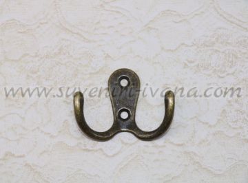 Метални закачалки с две куки за закачане, подходящи за монтиране върху дървени повърхности. Размери 5,2 х 3,0 см. Цвят старо злато.
