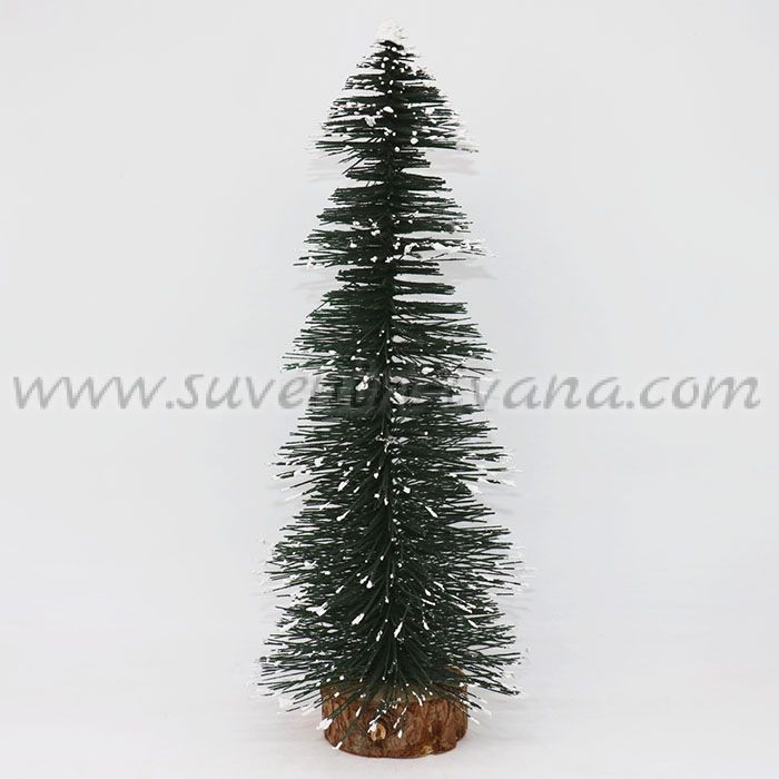Декоративна коледна елха с телена основа, закрепена на дървена шайба. Елхичката е със заснежен ефект и е с размери 33,0 х 13,0 см.