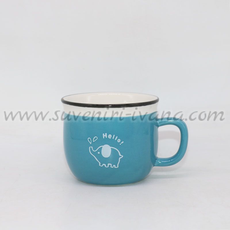 Светлосиня керамична чаша с надпис Hello и сладка илюстрация на слонче. Подходяща за кафе, чай, мляко или горещ шоколад. Вместимост 180 мл.