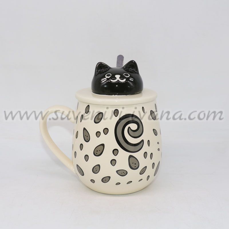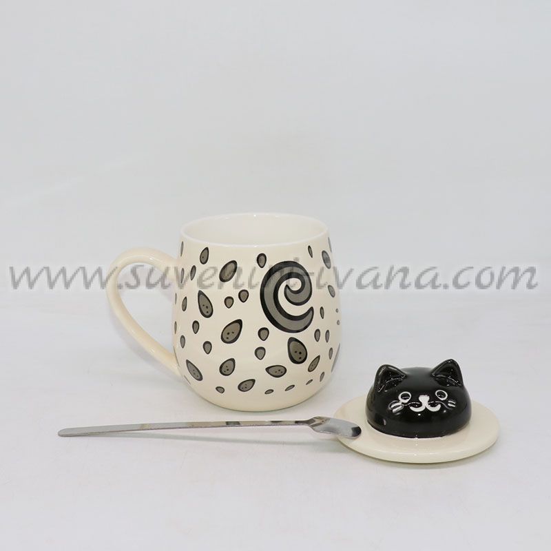 Керамична чаша с капаче коте и лъжичка, модел две