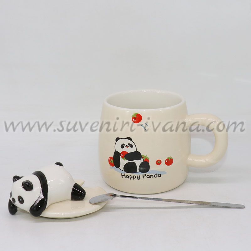 Керамична чаша Happy Panda с капаче и лъжичка, модел две