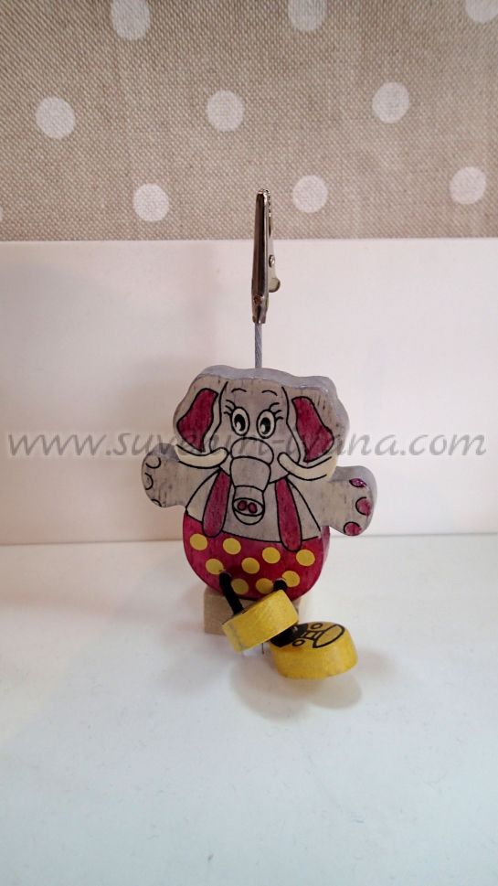 Дървена фигурка слонче с щипка за бележки 5,5 х 10,5
