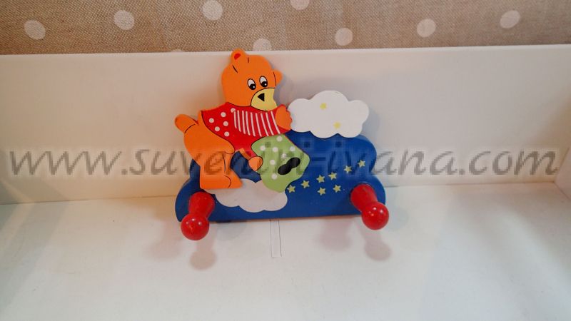 Дървена закачалка с 3Д декорация мече 12,0 х 9,0 см.