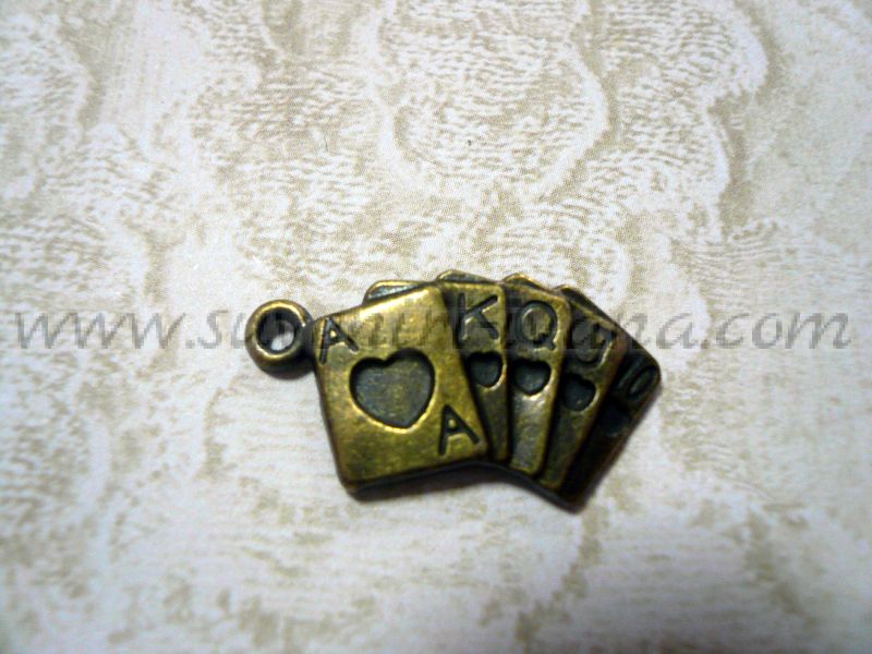 Винтидж елемент за бижута тесте карти. Изработен е от метал с цвят старо злато. Размер 2,2 см.