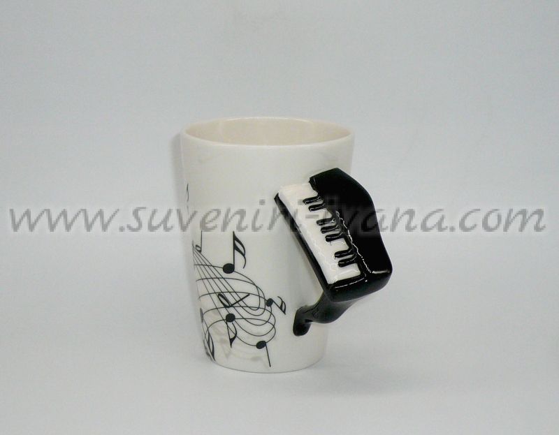 Порцеланова чаша с музикални ноти и дръжка с формата на пиано. Размери 10,0 х 7,5 см.