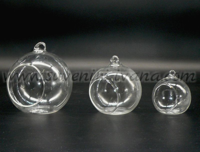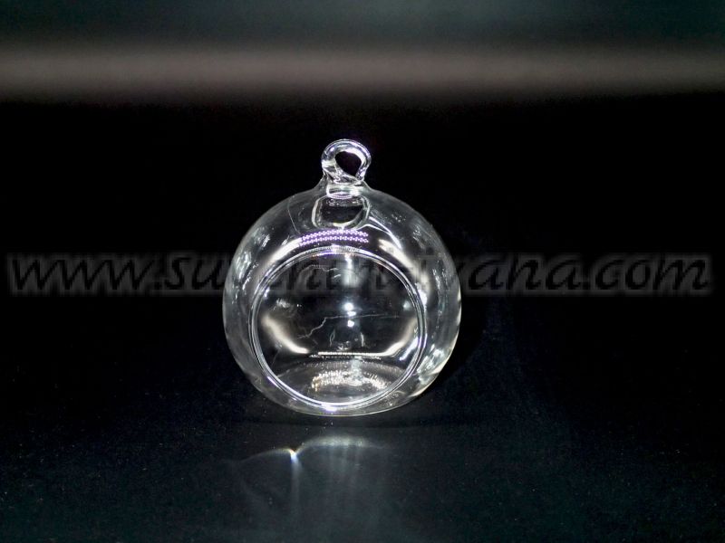 Стъклена топка за закачане с отвор за поставяне на различна декорация, малка. Размери 5,5 х 5,0 х 6,0 см.