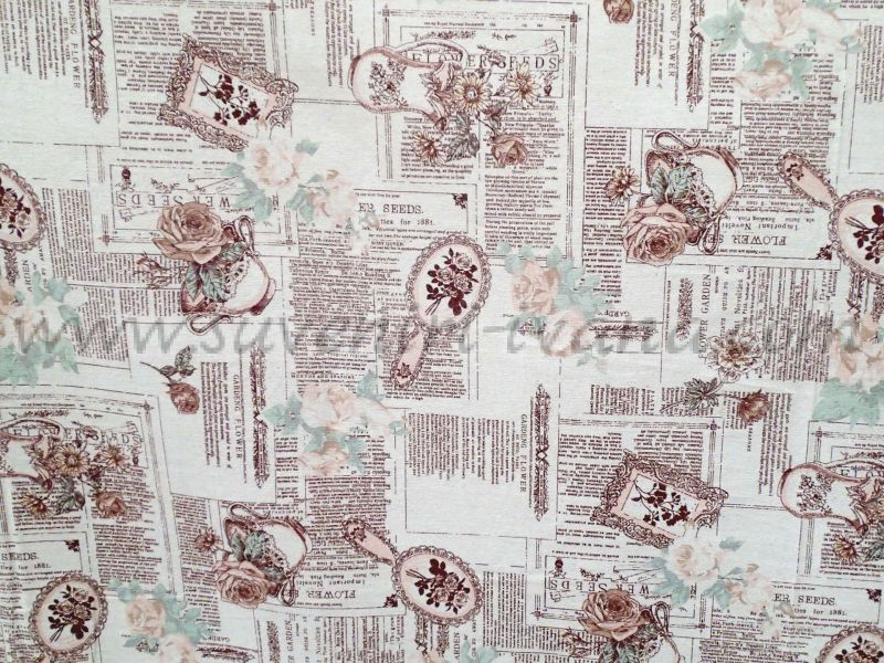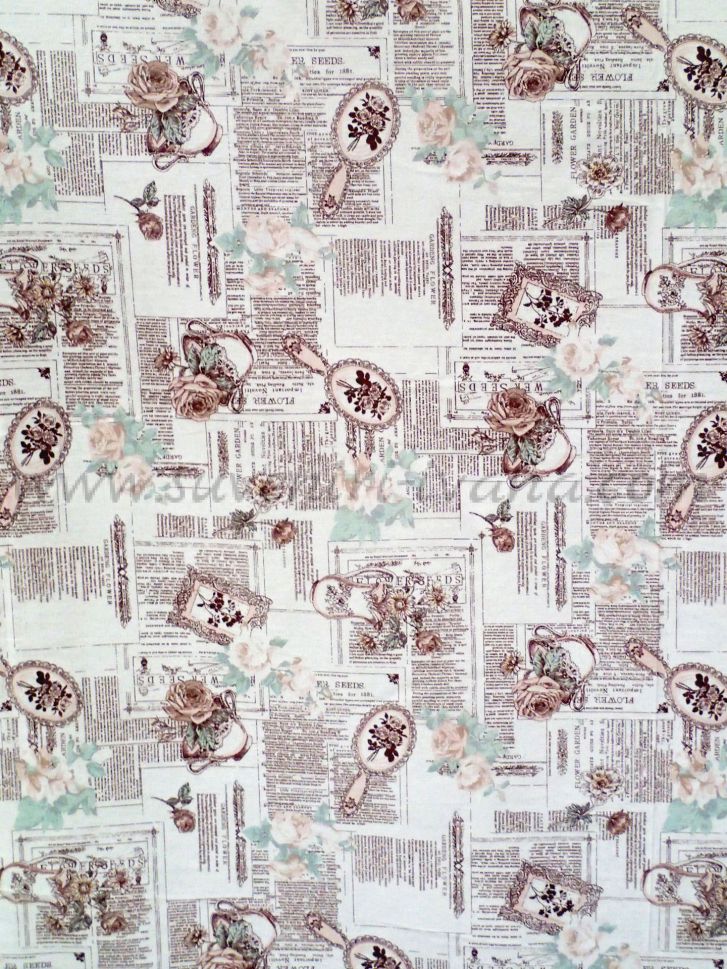 Плат в стил винтидж с флорални мотиви. Ширина на плата 159 см. Материя памучен лен. Подходящ за покривки, дамаски, завеси, шалтета, декоративни възглавници и други.