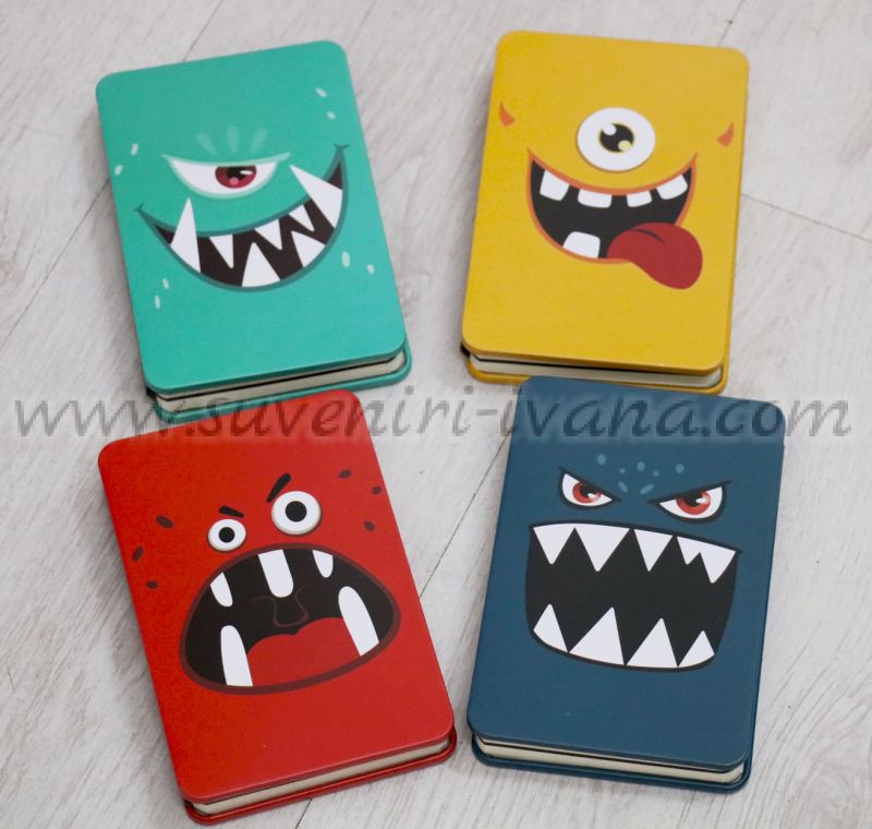 Забавни тефтери чудовища и таласъми, модел едно. Страниците на тефтера са различни видове - изчистени, на редове, на квадратчета и страници в черно. Тефтера е с метални корици и е много подходящ при пътуване. Размери 10,0 х 15,0 см. Брой листа 112.