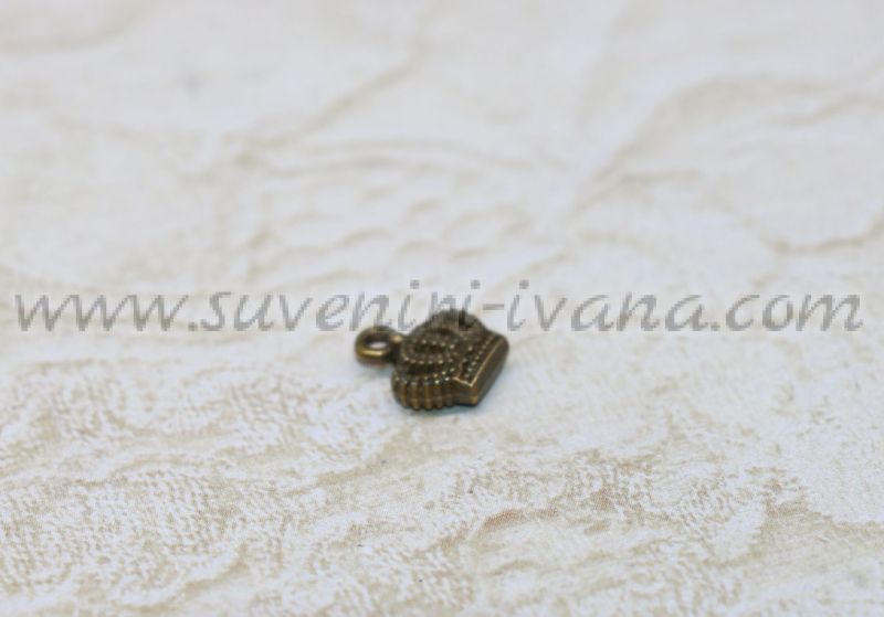 Винтидж елемент за бижута корона с размери 1,0 х 1,1 см. Цвят старо злато. Подходящ е за използване при изработката на гривни, колиета и други видове бижута.