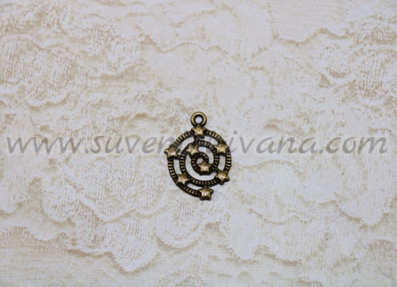 Метален елемент за бижута спирала със звезди с размери 15 х 20 мм. Цвят старо злато. Този метален елемент е подходящ при изработка на колиета, гривни, гердани и различни видове бижута и арт проекти.