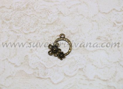 Метален елемент за бижута венец с цветенца с размери 18 х 20 мм. Цвят старо злато. Подходящ е при изработка на колиета, гривни, гердани и различни видове бижута и арт проекти.