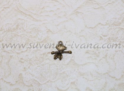 Винтидж елемент за бижута птиче на клонче с размери 1,7 х 1,6 см. Цвят старо злато. Подходящ е за използване при изработката на гривни, колиета и други видове бижута.