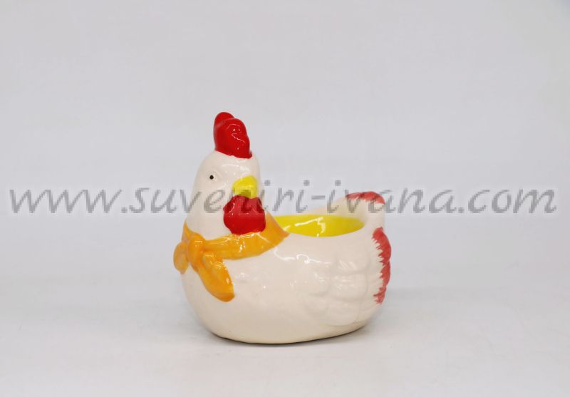 Декоративна керамична кокошка подходяща за използване като украса за Великденските празници. В нея може да се постави украсено великденско яйце. Приблизителни размери /д/ш/в/ 8,5 х 7,0 х 8,0 см.