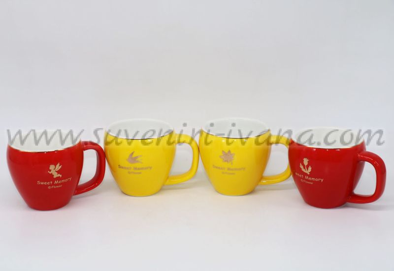 Керамични чашки за кафе в червено и жълто серия 'Sweet memory'. Височина на чашата 6,0 см. диаметър в горната част 5,5 см. Вместимост 100 мл. Цената е за един брой чашка.