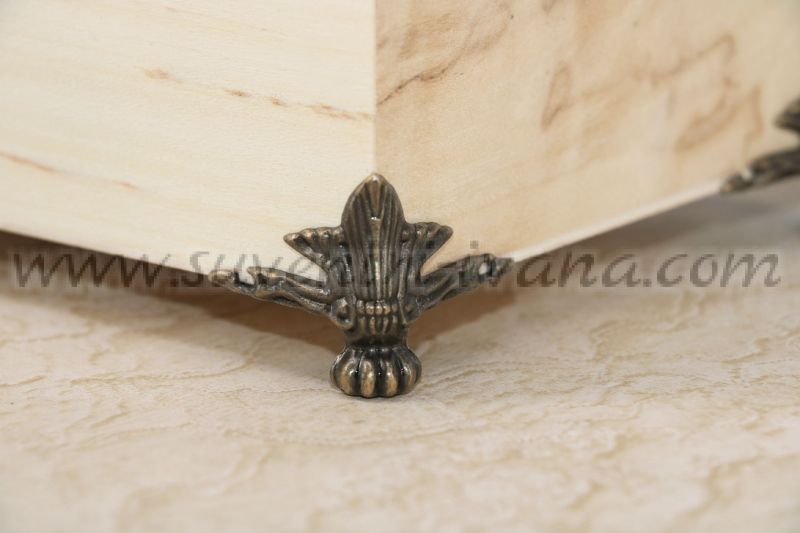 Декоративни метални крачета, подходящи за украса на дървени кутии, леки мебели или други подобни предмети и аксесоари. Цвят антично злато. Размери: височина на крачето 28 мм. размери на ъгъла за закрепване 29 х 29 мм. Други модели крачета за обков може да разгледате тук.