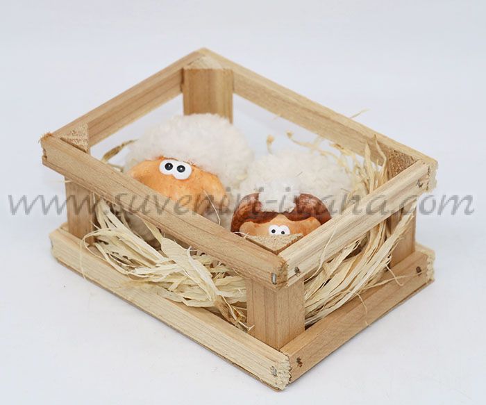 Керамичните овце са с приблизителни размери 7,0 х 5,0 см, а дървената кошарка 12,0 х 9,0 х 5,0 см.