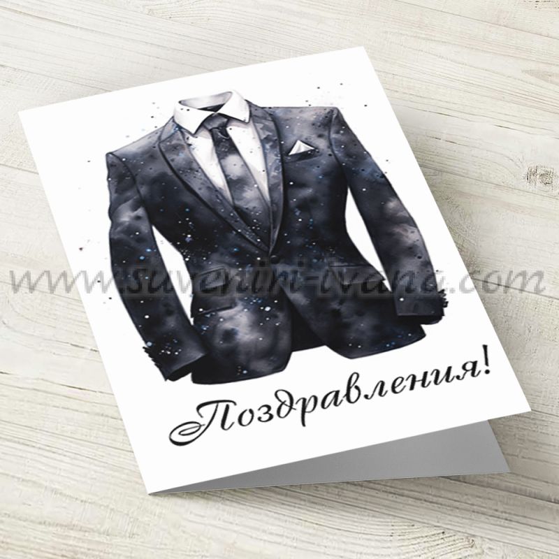 Ръчно изработена поздравителна картичка с надпис 'Поздравления'. Картичката е с размери 10,0 х 15,0 см и се предлага с плик.