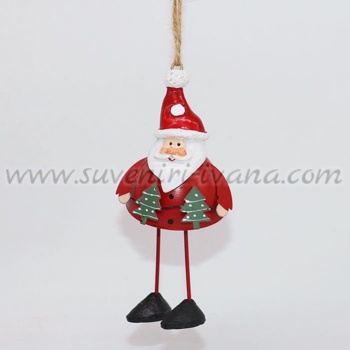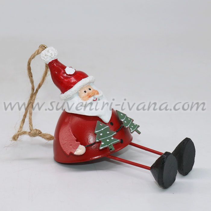 Тази коледна играчка за декорация е изработена от метал и полирезин. Краката на фигурката дядо Коледа са подвижни.