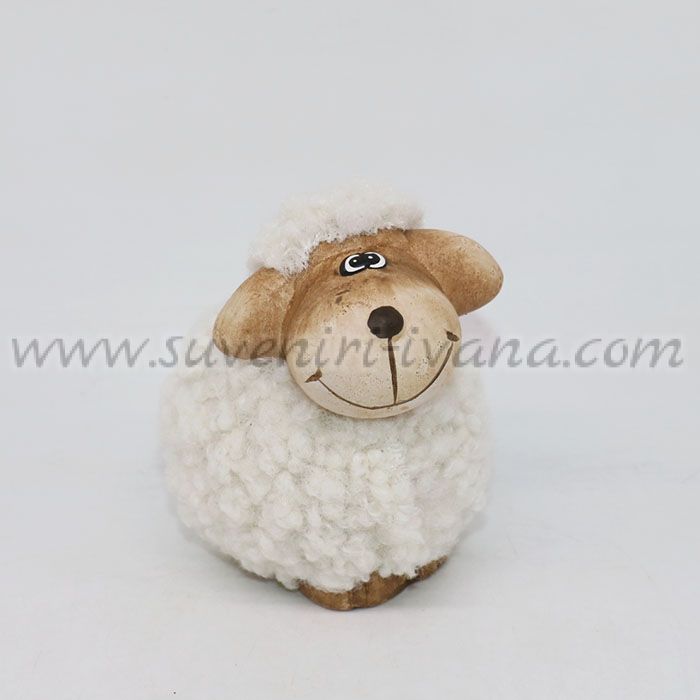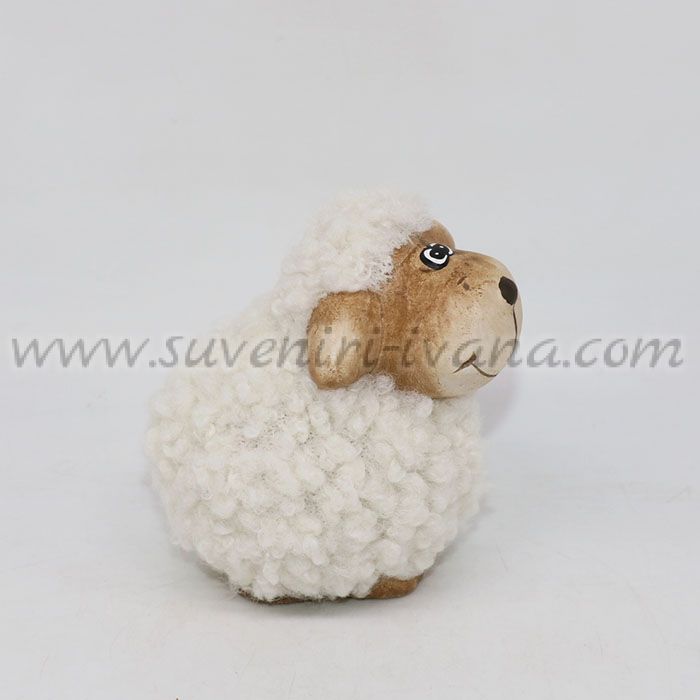 Декоративна фигурка керамична овца покрита с бяла мека вълна. Подходяща е за декорация на дома, работното място или за подарък.