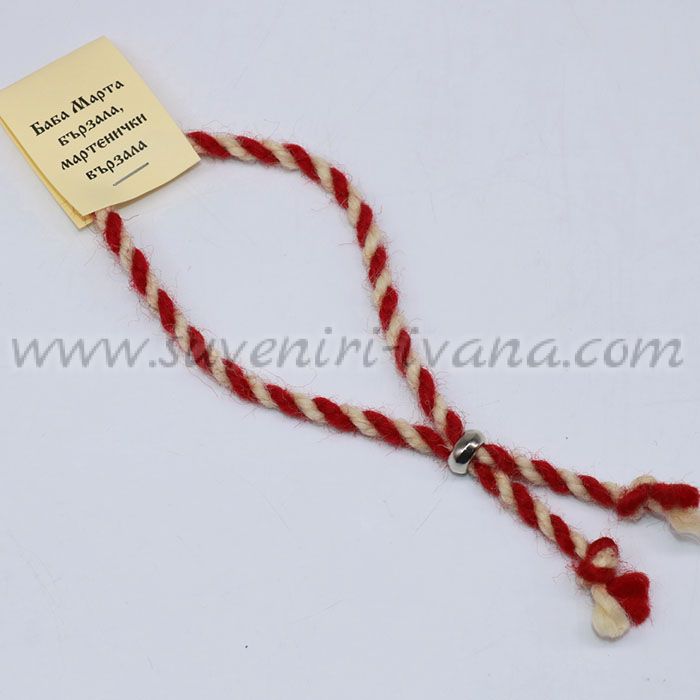 Мартеничката гривна с метално мънисто е подходяща за връзване на китката. Мартеничките се предлагат с картонче с първомартенско стихче.