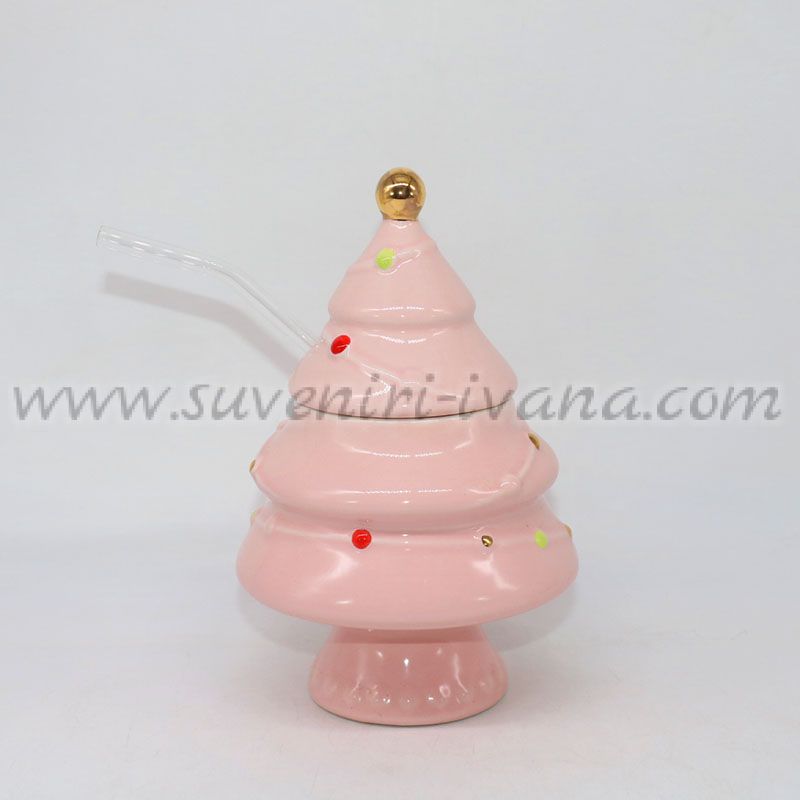 Създайте празнично настроение с тази очарователна керамична чаша във формата на елха. Комплектът включва капак с декоративен златен връх и стъклена сламка, което я прави подходяща както за топли, така и за студени напитки. Идеална е за коледни партита, уютни зимни вечери или като стилен подарък за близки и приятели. Освен практична, чашата може да служи и като оригинална декорация за празничната маса или офиса.