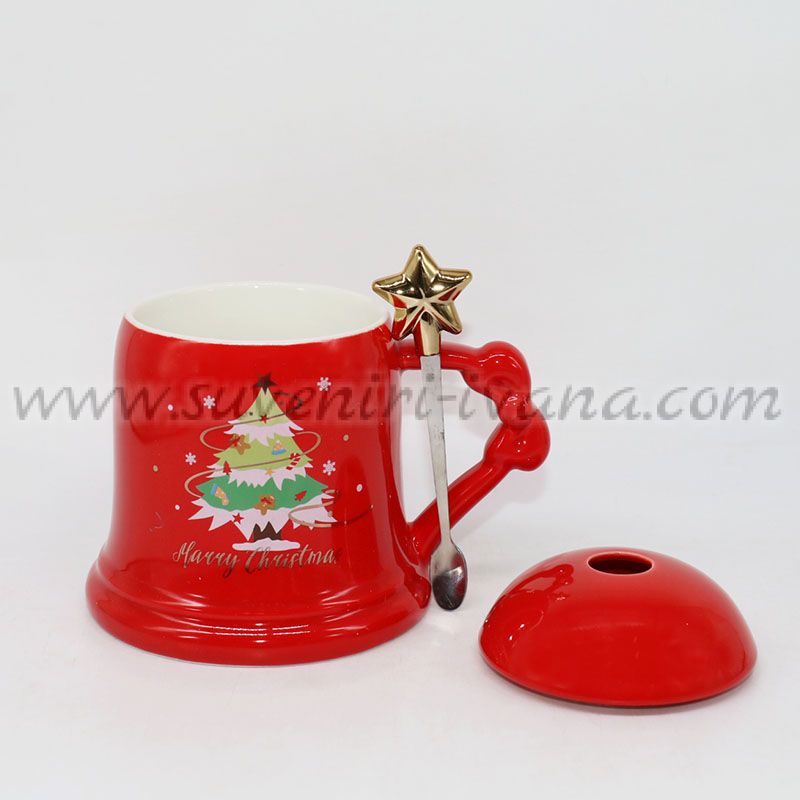 Коледна червена чаша с капак и лъжичка – Merry Christmas