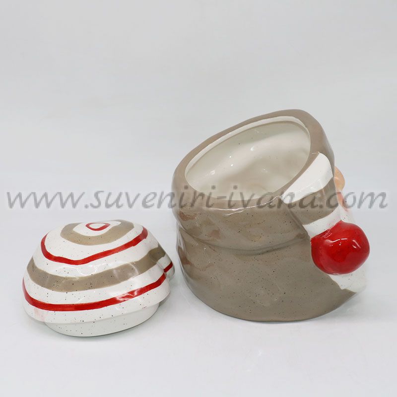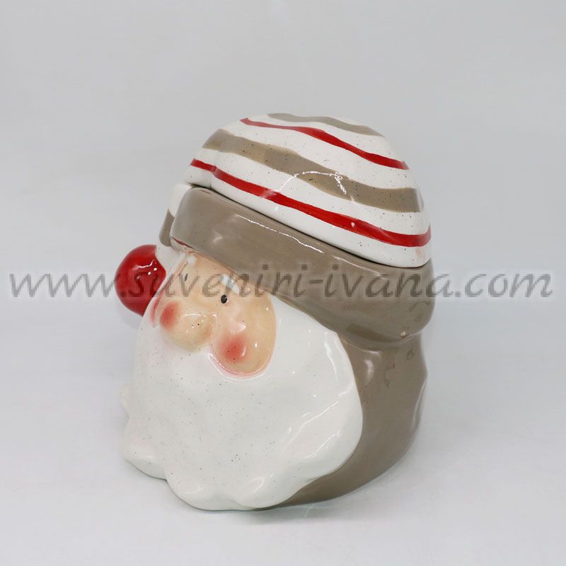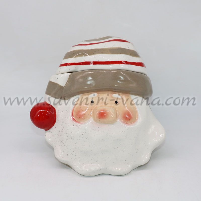 Очарователен керамичен коледен буркан с капак във формата на Дядо Коледа. Подходящ за съхранение на сладки, бонбони, чай или малки празнични изненади.