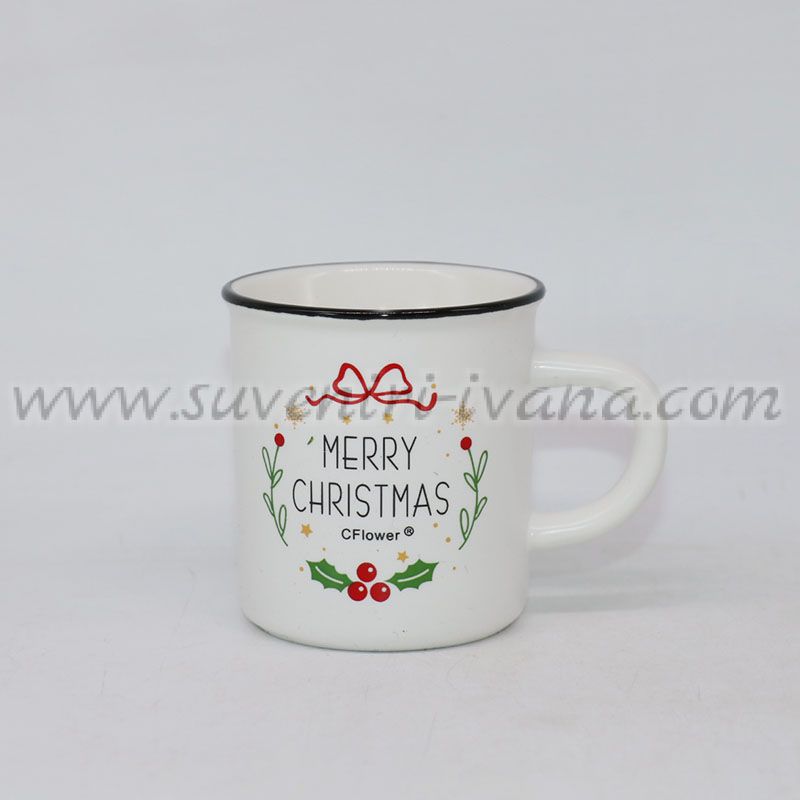 Тази очарователна коледна чашка ще внесе настроение във всеки зимен ден! Изработена от качествена керамика, тя е украсена с цветни коледни мотиви, а надписът "Merry Christmas" я прави истински празнична. Чашата е подходяща за кафе и е чудесна идея за коледен подарък. Вместимост приблизително 100 мл.