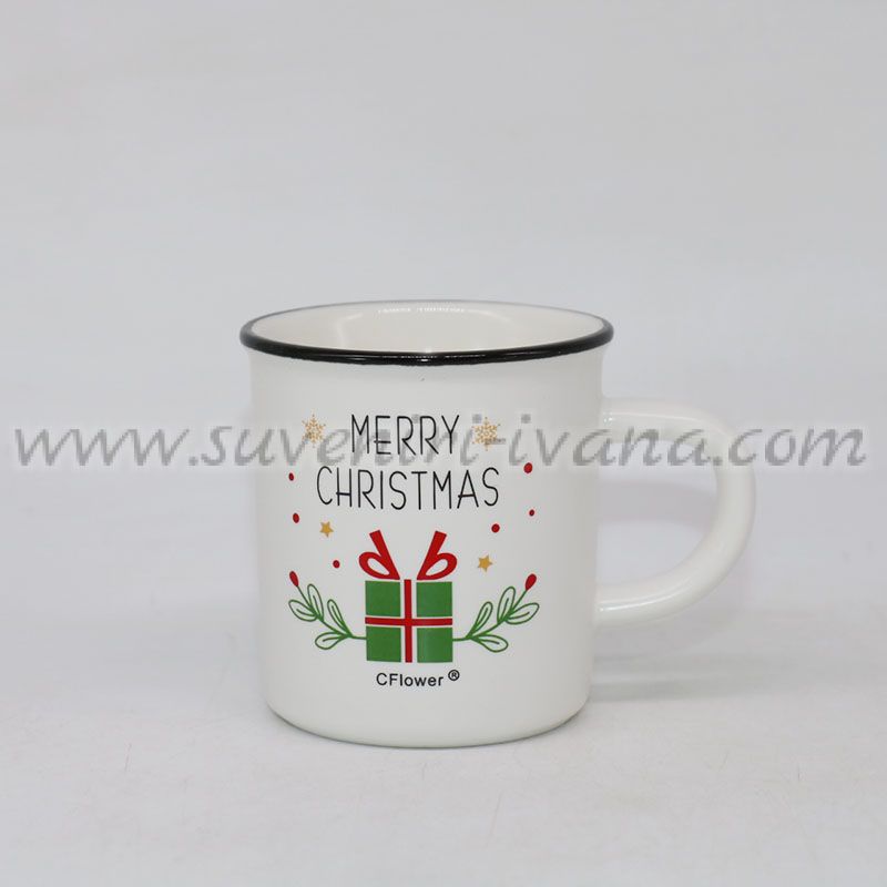 Малка керамична чашка с илюстрация коледен подарък и надпис "Merry Christmas" – идеална за коледна декорация за дома или офиса, както и за коледен подарък.