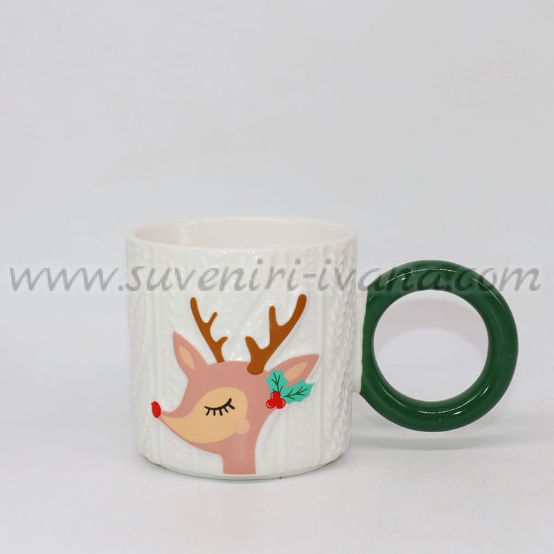Коледната чаша с коледно еленче е чудесен начин да внесете празнично настроение във всеки ден. Изработена от висококачествена керамика, тя е в класическо бяло с релефен десен и зелена дръжка с кръгла форма за удобен захват.
