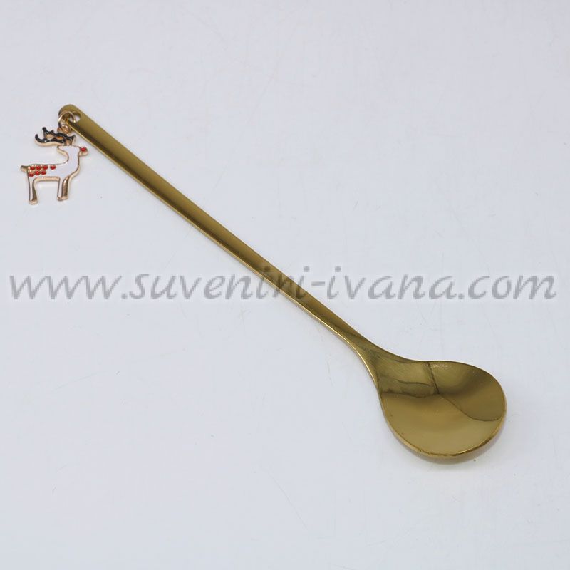 Елегантна златиста лъжичка с декоративен коледен елемент – еленче. Подходяща за сервиране на напитки, десерти или като празничен акцент към сервиза ви.