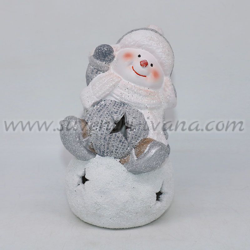 Светеща коледна фигурка – снежен човек с LED лампичка, модел две