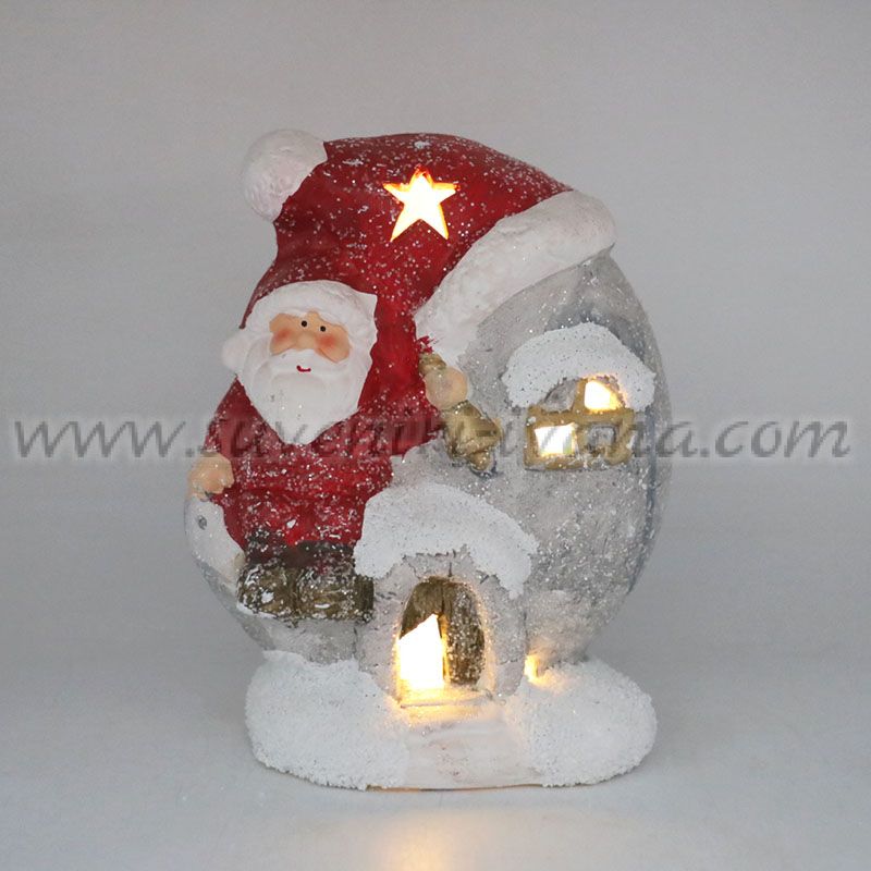 Керамична светеща фигурка на Дядо Коледа до снежна къщичка с LED лампичка, която излъчва топла светлина. Чудесна коледна декорация, която ще внесе уют и празнично настроение във всеки дом.