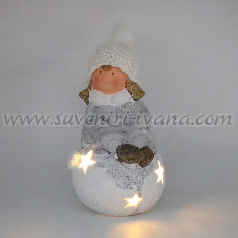 Керамична светеща фигурка на зимно дете, седящo върху снежна топка с LED осветление. Перфектна коледна декорация, която ще внесе уют и празнично настроение във всеки дом.