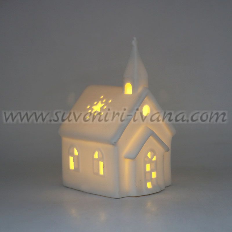 Керамична светеща къщичка – коледна църква с LED светлина