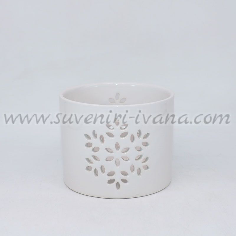 Керамичен свещник с изрязан снежен мотив – кръгъл