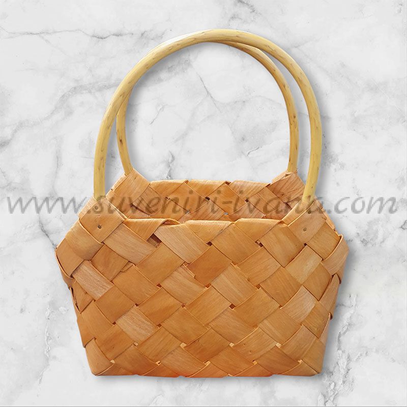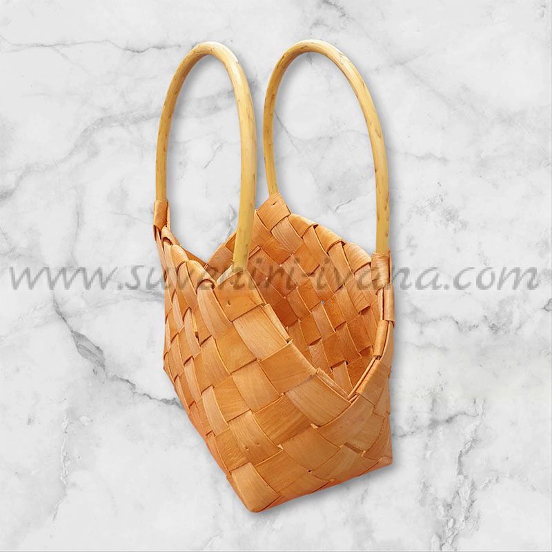 Декоративна плетена кошничка от естествени дървени ленти с две дръжки. Подходяща за подаръчни аранжировки, декорация и съхранение. Изработена от здрав ратан и с удобни дръжки, тя е практична и стилна.