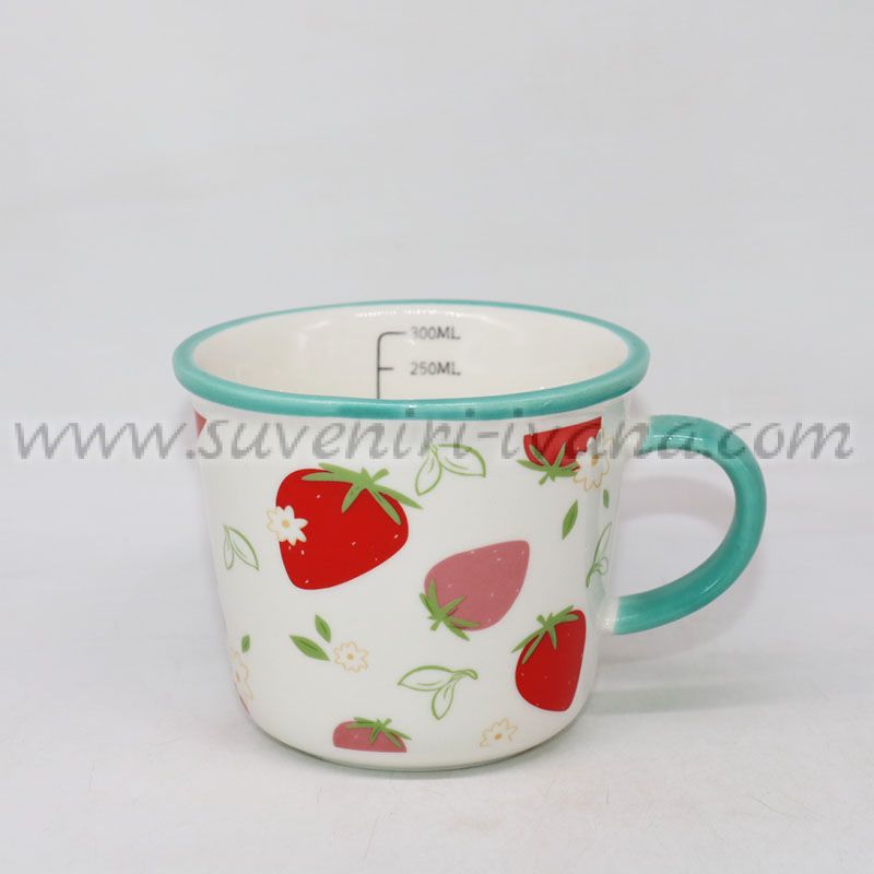 Свежа керамична чаша с ягоди, тюркоазена дръжка и вътрешна мерителна скала до 300 мл.