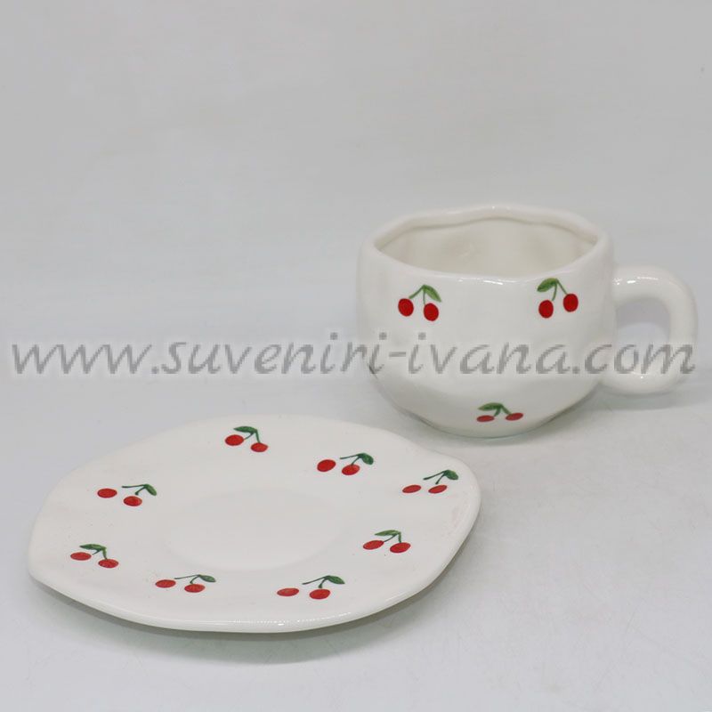 Керамичен комплект чашка с чинийка на черешки