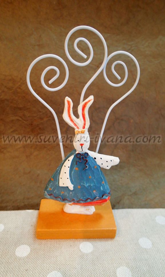 Декоративна стойка зайче 7,0 х 15,0 см. подходяща за бележки, визитки, снимки и други