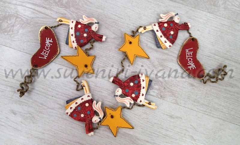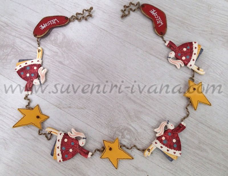 Гирлянда със зайчета от полирезин и дървени звезди 110 см.